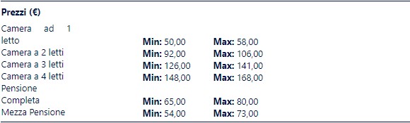 | Servizi | Pensione Tavola Calda Parcheggi Ascensore TV Telefono Sauna Carte di Credito Carta SI - Master Card - Visa - Bancomat |