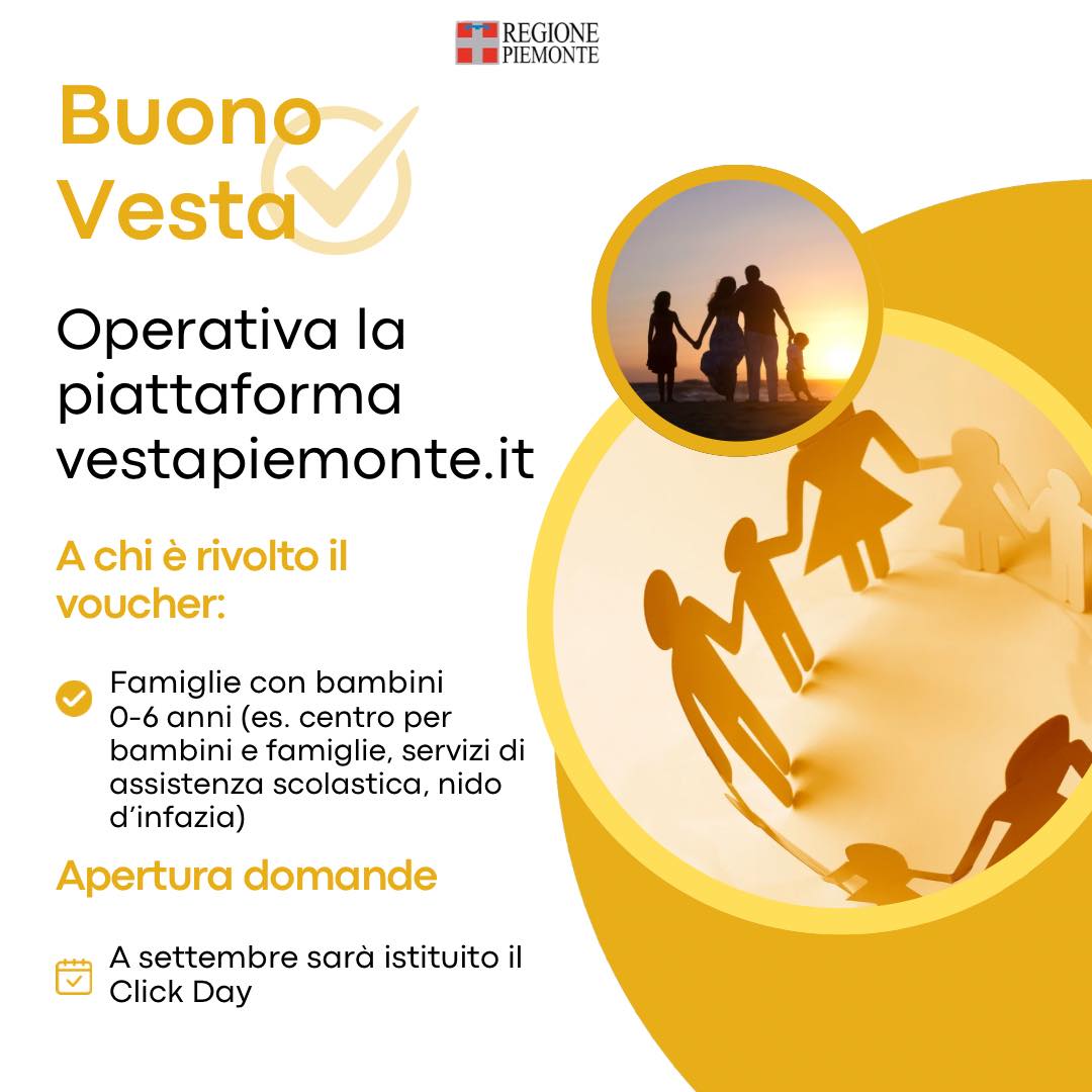 Il Buono Vesta è un bonus introdotto nel 2025 dalla Regione Piemonte per sostenere le famiglie con figli di età compresa tra 0 e 6 anni, nati dal 1° gennaio 2019.