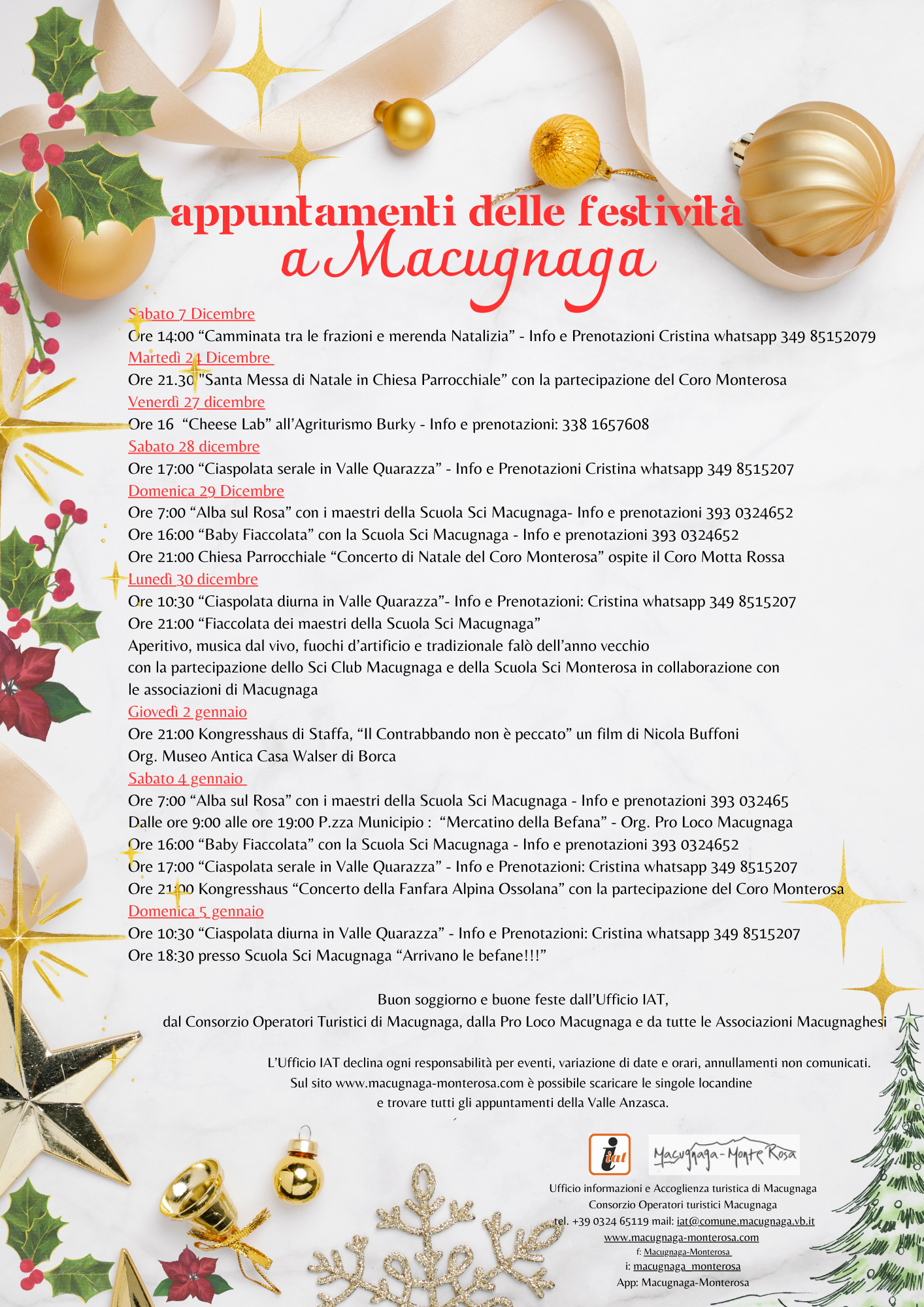 Festività 2024/2025 - Elenco degli appuntamenti e degli eventi in programma a Macugnaga
